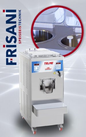 Die Produktionsmaschinen Combigel von Telme sind mit zwei vertikalen Produktionszylindern ausgestattet. Zum gleichzeitigen Mischen und Kochen einer Sorte und dem gleichzeitigen Abkühlen und Ausfrieren einer anderen Sorte. Die Telme Combigel ist geignet für Betreiber mit geringen Produktionsflächen, die aber erhöhte Produktionskapazitäten benötigen. Die Combigelserie verarbeitet spezifische Rezepturen für jede einzelne Sorte. Sehr schnell und vielseitig für die Herstellung von Sorbet, Granita, Konditorcreme und vielen anderen Produkten, aber hauptsächlich für die Vorbereitung und Herstellung von Speiseeis von bester Cremigkeit und Konsistenz. Ein kombiniertes Gerät zum Kochen und Ausfrieren mit bester Qualität.