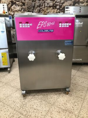 Carpigiani Coldelite pasteurizer EPS 60&60. The EPS is 2 pasteurizers in one unit. Fully electronic separate control for easy operation and use. The constant maintenance of the temperature in connection with the set pasteurization temperature is controlled automatically. The EPS 60&60 ensures maximum hygiene thanks to its compatible technical design. The transparent lids are equipped with safety microswitches and allow insight into the production progress.